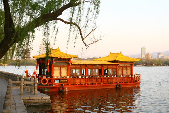 迎着初升的太阳,小荔枝兴奋极了。 从民宿出来打车到大明湖也就十分钟的路程。大明湖真的挺坑的,收费区域30一张票,还有免费的园区。除了进门的荷花,实在没啥可看的,光走路了,累死宝宝了~一家人兜兜转转,做了大船,陪着小荔枝玩了游乐城。