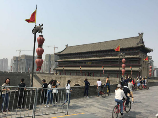 在回民街饱餐之后,才开启今天的行程。从回民街到古城墙很方便,公交车不到20分钟。买完票,租个自行车,开始游古城墙。