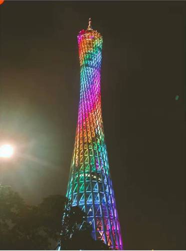 终于等到了夜幕的降临,广州塔随着黑夜来临变成了绚丽多彩的小蛮腰。以前总是在网上看见,但亲眼看见时候确实有被惊艳到。我们提前跟木鸟房东那里买了440的通票,省去了排队环节,挺好。