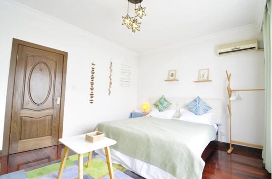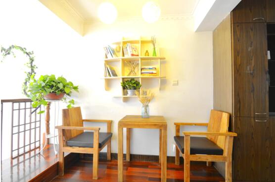 真的是超级有味道的民宿,我喜欢的日式原木家具搭配绿色小清新的摆件,给人清爽舒适的感觉。四周看了看,一楼是工作室、茶室,还有超棒的投影仪看电影,二楼是厨房,卧室在四楼,干净温馨,让人一眼就爱上了。