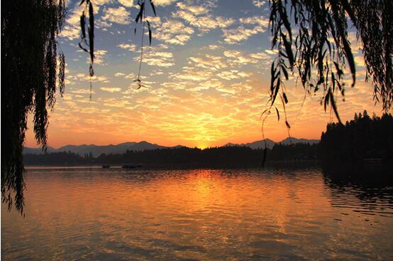 三四月湖边的柳枝嫩绿嫩绿的,在春风中轻轻的摇来摇去,就像在跳着欢快的舞蹈,路两旁开着各种各样的鲜花,有桃花,海棠,还有日本的樱花等,都开得特别灿烂,美丽极了。白天,湖水变得碧绿碧绿的,清澈极了,坐满人的游船在湖中间随风而动,不时传来一阵欢笑声,好一幅人在画中游的景象映入人们的眼帘。夕阳下的西湖非常美,飘飘洒洒把金黄色撒了一整湖。