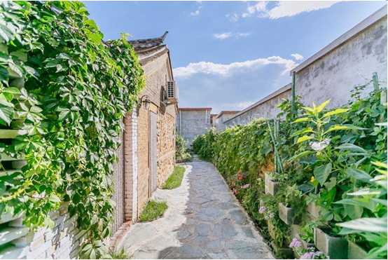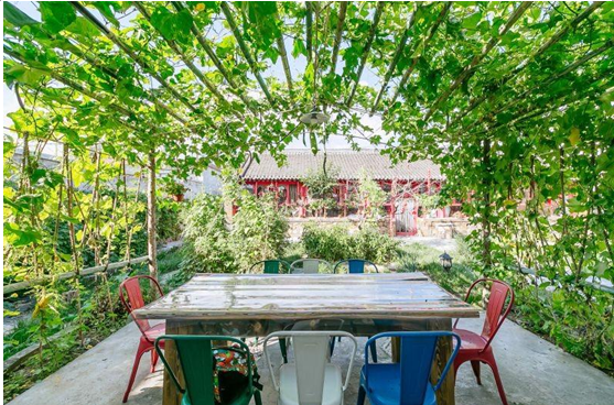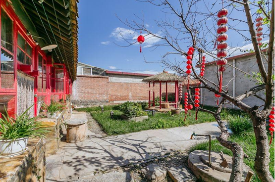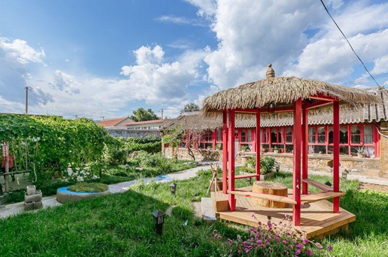 巧的是,我们发现了一处农家院,蓝天白云,绿树成荫,看惯了城市的灯红酒绿,人来人往,心也不自觉的变的浮躁,突然无比怀念小时候在老家农村的日子,无忧无虑,可以在自家小院里尽情的跑跳,和小伙伴做游戏。再看看豆豆现在的生活,突然有些心疼他,所以决定,带他住一次农家院,让他感受一下质朴和自然的味道。
