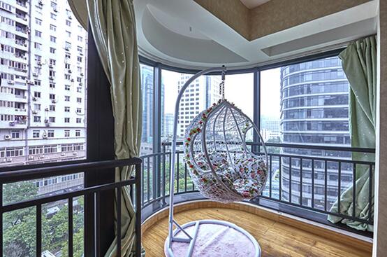 阳台是独立式的,放着一个美美的秋千椅,很有情调。