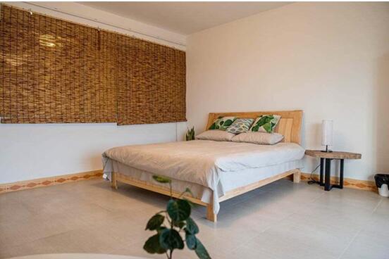 两间清新田园风的大床房,配上一间有上下铺的辅助房,让你既能和爱人私享度假生活,还能将辅助房当做老人房,或儿童房,方便你照顾他们的起居。