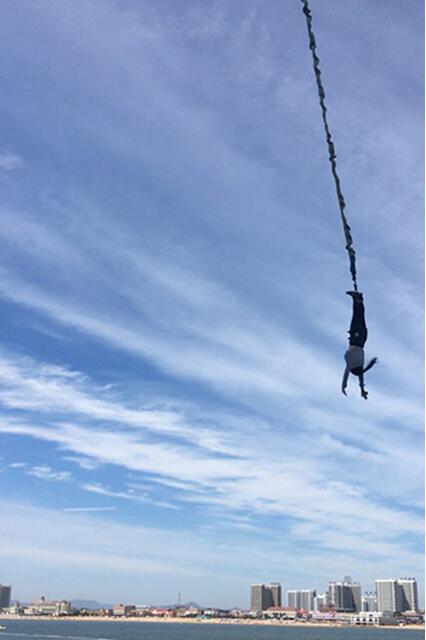 依依不舍地从图书馆出来,要去仙螺岛。坐着缆车在高处欣赏南戴河的美,蓝天下的蓝色大海,美的让人陶醉。这里开启了我人生第一次蹦极,虽然之前一直都充满期待,但是真正要往下跳的那一刻心理还是有些害怕的,经过长时间的犹豫之后纵深而下的一瞬间,那真叫一个刺激,感觉还不错,有胆子大的可以一试啊。