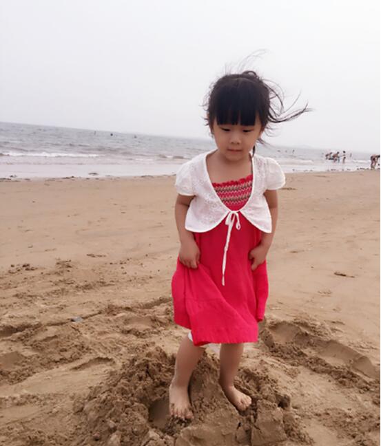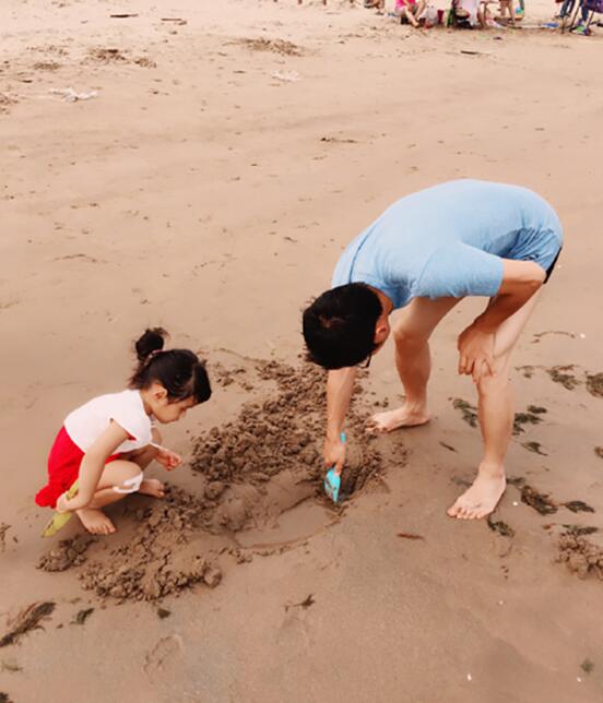 北戴河海滨非常美,悠悠第一次见到海,一会儿追着浪跑,一会儿再浪前面跑,整个人都玩疯了。她还时不时把自己的脚埋在沙子里,淘气的喊“救命”,特别可爱。