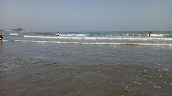 从海底世界出来坐车去石老人海滨浴场。这几天的天气略带雾蒙蒙,虽然天不是很蓝,但是温度却很舒服,不热不晒刚刚好,微风吹的人很舒服。对于很久没见大海的我们来说,终于开启了浪时光,这里沙滩还不错,各种玩水和拍照,玩的不亦乐乎。