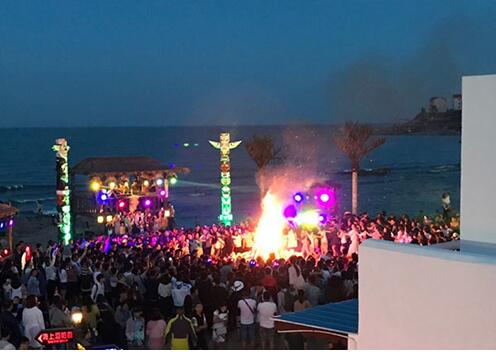 说到北戴河海滨之夜,那么你一定不能错过碧螺塔海上酒吧公园的夜场。这里有鬼屋、会动的墙,等到夜幕降临,和陌生人手牵手随着节拍跳一场篝火晚会,再吃着烧烤看泰国红艺人(其实都是人妖)充满异域风情的表演,最后去清吧点一杯酒,听一支慢歌。没错,这就是我们提前做好的攻略,也是我们行程最完美的一部分,嗨起来!