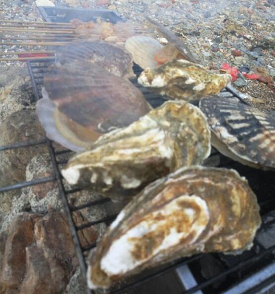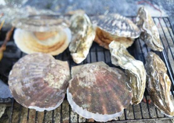 房东阿姨不光教我们怎么烤海鲜,还教我们怎么吃。烤蛤蜊、烤扇贝,放在篦子上排好,蛤蜊和扇贝张开就能吃;烤大虾,烤到红通通的弯了腰就熟了;烤海蛎子同样放在篦子上,10分钟后扒开一个,如果汁液所剩不多,就都可以吃了。