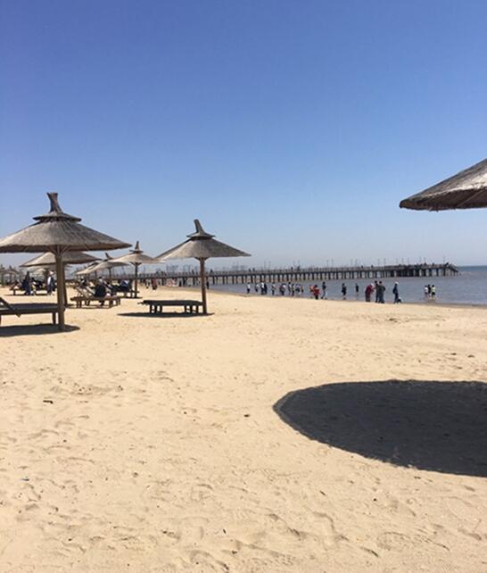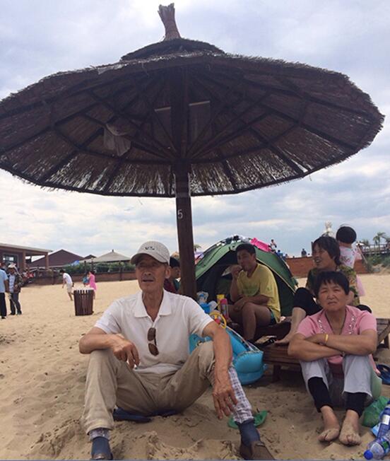鸽子窝公园还是很大的啊,这里有浅滩、有栈桥还有破旧的木船点缀着海滩,别有一番味道。二老在这里边走边休息,看人看景,悠闲度过一个下午。