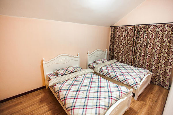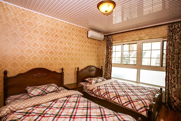 一共四间房,两间大床房,两间标准间,我们一行八个人正好标配。房屋分配是这样的,八个人正好是两对情侣加四个单身狗,这也是我们选择这栋别墅的原因。