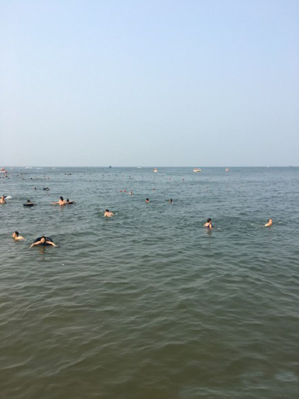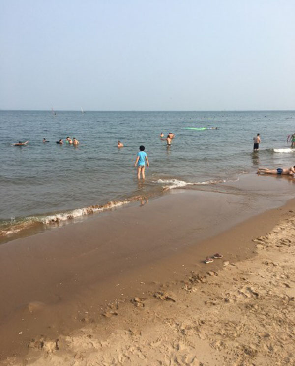 在泳池里打闹了一会,准备出发去海边游泳,迎着浪的感觉才爽,这次我们选择了去北戴河的浴场,到了那里我们比赛憋气看谁时间长,游泳看谁快,姑娘们当裁判。后来还买了一个水球,组成了两队,输的一队要接受惩罚,就是大家一起把那个人抱起来扔到海里,哈哈。如果是女生输了,要男生代替她接受惩罚。