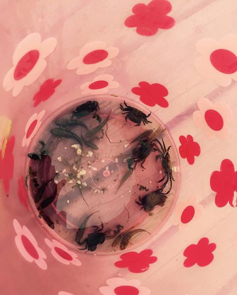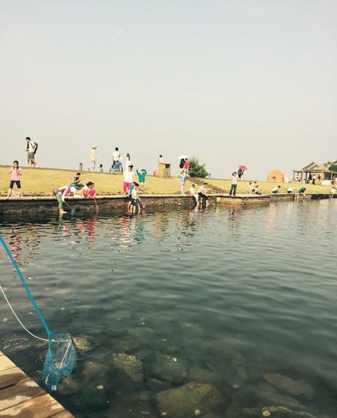 卷起裤腿,踩进浅滩,甩起小网开始捕捞。刚开始的时候,找不到诀窍,一直在浅滩里兜兜转转,看到小鱼游过才抄网去追,后来发现这样的方式根本没有办法捞到鱼。再后来探索出诀窍,就是看到小鱼之后,朝着它即将游过去的方向往回捞,这样捞起来顺利了不少。鉴于下午还有其他行程安排,干脆就把这些收获送给了一个特别可爱的小盆友,听着甜甜叫姐姐的声音,直接被萌化了。