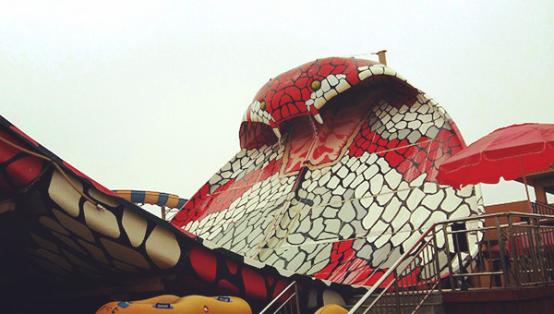 推荐一:眼镜蛇 就是这个红白相间的东东,排队人最多,如果没有一开园就排队,估计要等到中午大家玩累准备吃饭的时候才能排上,早排人少排起来很快,冲出蛇嘴的一瞬间感觉太棒了,胆小的朋友不建议玩,我反正是玩了三遍。