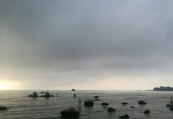 周围简单吃过午饭,去老虎石公园。这里是一个休闲海水浴场,门票8元。所谓浴场,当然是要下水玩耍。如果不会游泳,可以套个游泳圈在海里飘荡,解暑降温效果立竿见影,但是防晒工作还是不容忽视的,即便是阴天,紫外线也是很强的。