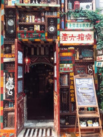 从八大关可以走到大学路,这条路上有很多咖啡馆和这种小店,这家是猫咪主题,很可爱。