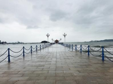 吃完饭我们就去了青岛有名的栈道,平时看攻略都是乌央乌央的人,但是我们去的时候刚好下过雨,竟然没什么人,平静萧瑟的它反而有了别样的韵味。