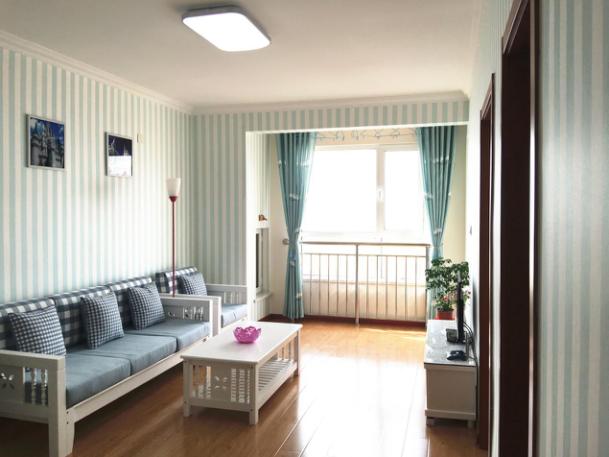 很幸运订到了一套青岛金沙滩的海景房,小区是欧式风格建筑,房间内装修清新淡雅,面朝大海,客厅有超大的落地窗,透过窗子便是一望无际的大海。