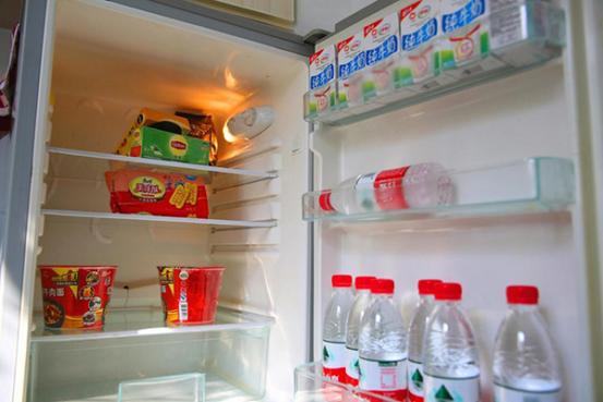 冰箱里准备好的桶面、水、牛奶、咖啡豆、花茶、茶叶,通通可以免费取用。
