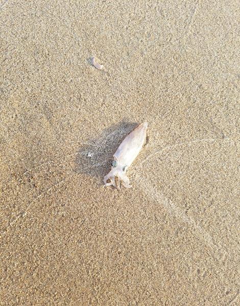 看完日出,赶赶海,在海边上发现了一个可爱的小章鱼(不知道是不是姑且先这么叫吧)