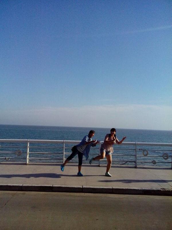 阳光正晒,却因为阵阵海风袭来,不觉得有多热,好多人直接在阳光下暴晒,我们可是不敢,尽管凉快,但我们知道这紫外线有多毒,一不小心就黑八度。