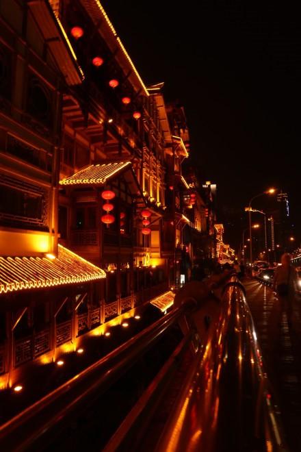 解放碑边上有好吃街,还有商场,所以我们一直逛到了晚上,在这儿看过夜景吃过饭后再去洪涯洞,不过大家注意洪涯洞晚上10点之后就会关灯,所以想看的话一定要在这个时间点之前去,我们也是听房东说过之后才知道。