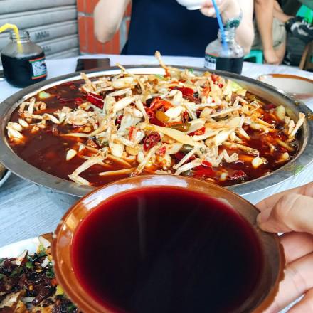 从武隆再坐车回到洪涯洞的时候已经夜里9点了,在楼下找了个串串馆又吃起了宵夜,不愧是美食之都,这个点儿了吃饭的地儿还是有很多人,热热闹闹的感觉特别巴适!