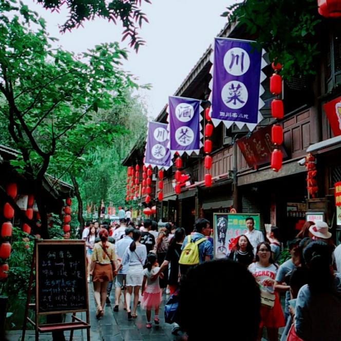 锦里跟宽窄巷子差不多,是一条特别古风的小街,里面都是仿古建筑。锦里的客流量非常大,基本就是人挤人的状态,带太多行李就不建议来这边了。