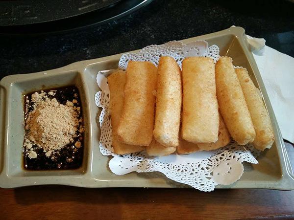 糖油粑粑,黏黏的,沾着红糖,跟驴打滚差不多,从小就爱吃这类食物,五分好评。