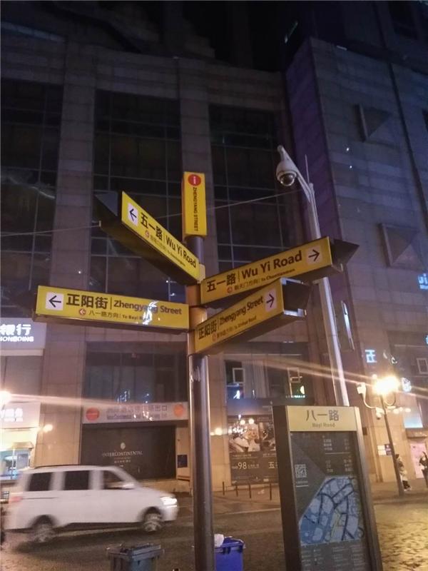 就比方说这个路口,这里是个三叉路口,路标有四个箭头不说,所以,到底哪边是五一路哪边是正阳街!纯粹是出来搞笑的吧!
