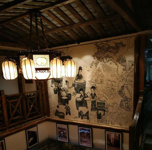 我们选了一家叫八里香的火锅店,氛围很好,古色古香的。