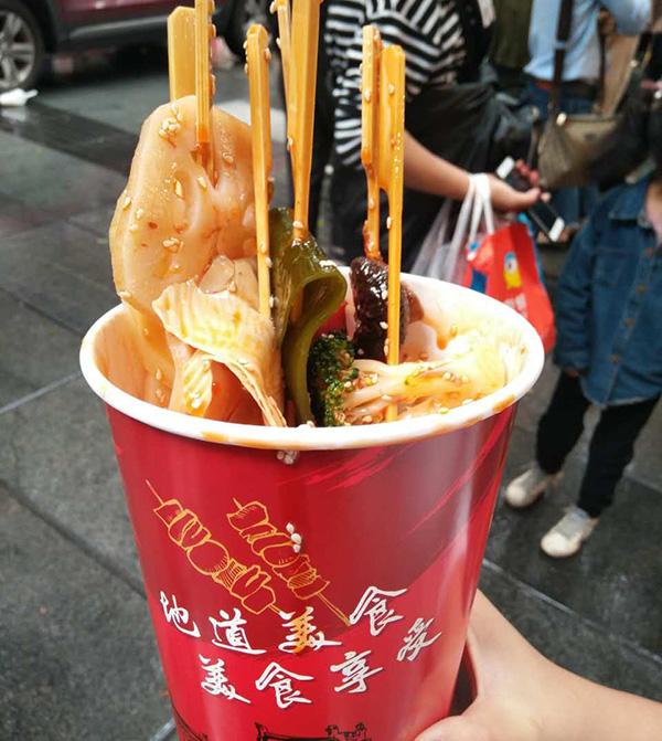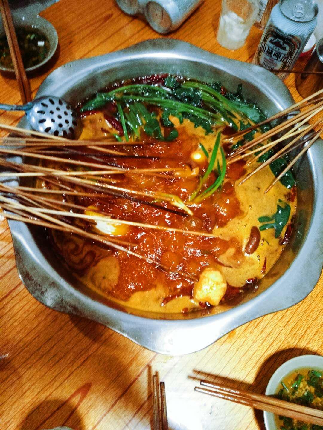 起床收拾,出门找饭吃。昨天吃的火锅,今天就吃串串。