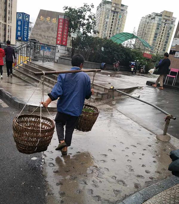 山城特有的运输方式,即使是现在,也依旧还有好多这种挑担夫,成为一道独特的风景线。