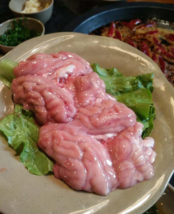 这个最爱,跟北方火锅的鸭血不一样,这边一般都是鲜鸭血,乍一看,有点血腥,但吃着很棒。