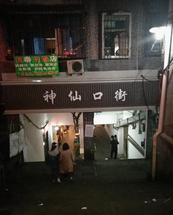 灯光都是暗黄的,我说这导航是懵人呢吧,正好被旁边一个抱娃娃的小姐姐听到了,她问我们去哪里,一口重庆音儿,一看就是本地人,我们说去望江公寓,小姐姐说顺着走,右拐,沿着弯儿直接向下走就到啦。