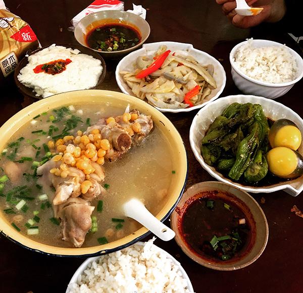 街道上有几家美食也是房东推荐的,名气和味道都不含糊:廖记砂锅、九园包子、喜洋洋餐馆,胃口有限,我们只尝了前两家。