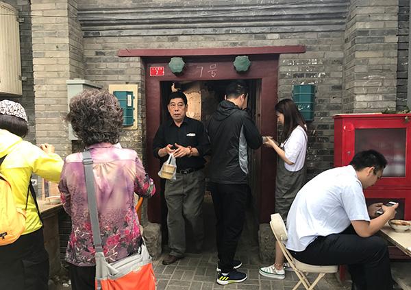 等待的间隙,房东自豪地跟我们说,不要看这里没有门店没有招牌,却已经是个23年的老店了,味道特别正宗,说是北京独一份都一点不夸张,而且只开半天,我们吃面茶都来这里。才4元一份,良心价啊。今天这个点,还好人不多,我上次来的时候,那个排队的人都到外面了。说着翻出朋友圈今年夏天的照片给我们看。