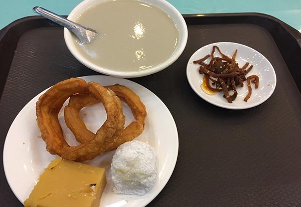 虽然豆汁喝不下去,但是那个焦圈还不错,口感酥脆,咸菜带点辣口,这两个一起吃味道自然是极好的,要是把豆汁换成豆浆,这早餐就完美了。
