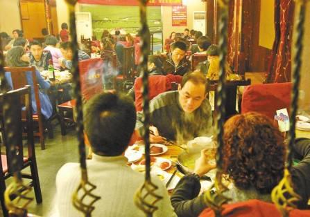“你们可以先去打油碟了,”说得我们一楞,她立刻解释说:“哦,就是你们说的取蘸料,建议蘸料只放香油、大蒜,适量放入盐和葱花就行,这样更能吃出火锅原本的味道,调料多了反而串味。”