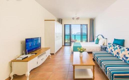床的旁边是开放式阳台,站在上面映入眼前的就是蔚蓝的海岸,阳光暖暖的照在我脸上,感觉十分惬意。