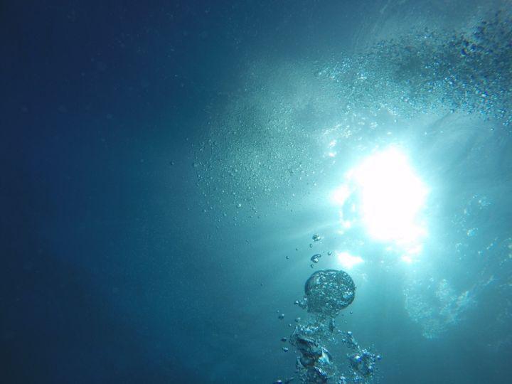 耳边没有任何陆地上的喧嚣声,只听得到水声和自己的心跳声。无数上浮的气泡在阳光的折射下变成无数颗星星,我仿佛穿越到另一个纪元。