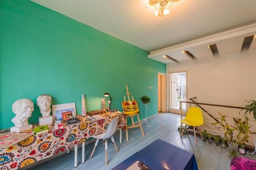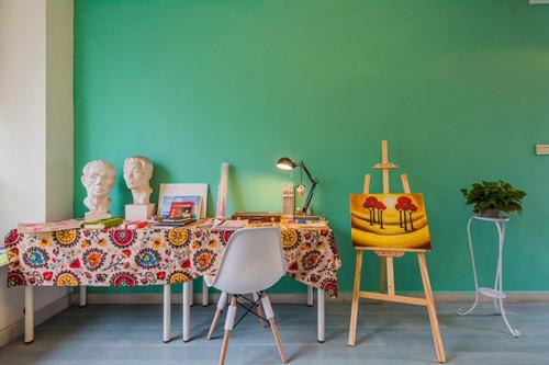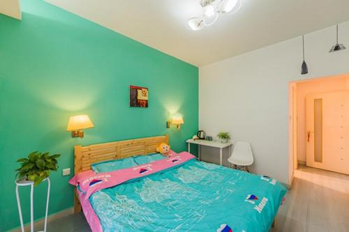在木鸟平台上就看过了入住房间的照片,之前也都住过几次民宿,但是却没有想象中那么好。这次我也没抱多大期待。但是在我进门的那一刻,完全改变了我的想法。客厅摆满了花花草草,浅绿色的背景墙,大大的飘窗可见远处风景。客厅里还摆着一些画板和画像,房东张姐说这都是她女儿布置的。她女儿以前是学美术的,后来出国留学了,她觉得摆着这好看,而来如果有喜欢画画的租客朋友还能在这过把瘾,或许在这会有灵感。那一刻,我觉得就像是在家一样自由。