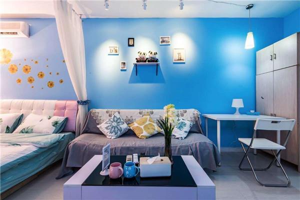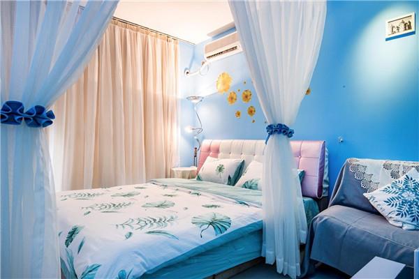 进门后房间的装饰还是让我很惊讶的,薄纱,水蓝色,蕾丝,都是我的最爱。房东说这都是他女儿的创意,毕竟现在木鸟平台审核的很严格,房子不漂亮、不干干净净的怎么吸引房客呢?
