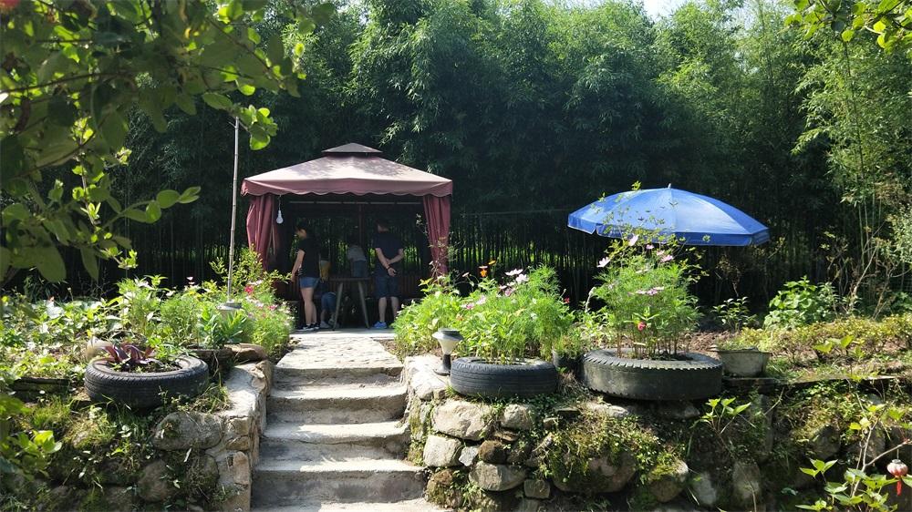 在木鸟短租上看了很久,选了这家无敌山景民宿是看好评特别多,8个房间全被我们包了,比较干净,两亩多超大私人庭院直接连通莫干山景区,泉水、菜园、秋千、凉亭、大片竹海、无敌山景,是大自然的天然氧吧,山安静,竹茂盛,泉清灵。我和孩子们都非常喜欢那个小溪,可以抓鱼,又清澈,还玩了附近的漂流,爽!